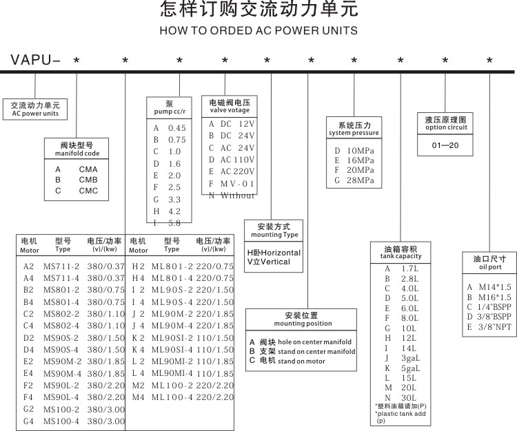 動(dòng)力單元訂購(gòu)說明